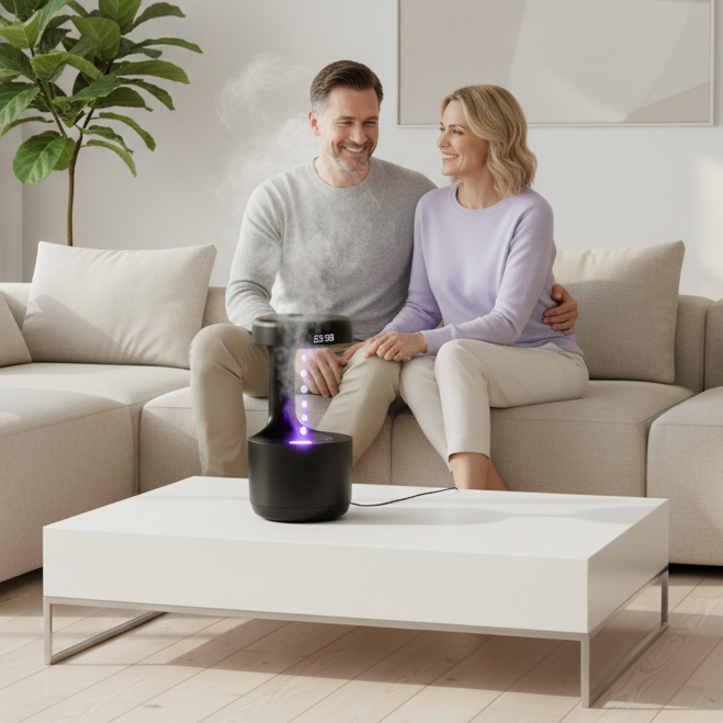 Meet the HydroLux an ultrasonic humidifier that levitates mist and brightens any room quietly. Elevate your space and breathe in comfort.