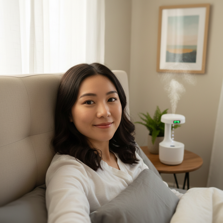 Experience the levitating mist in action as it floats effortlessly above the base. Transform any room into a serene, breathable oasis.